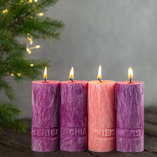 Adventes komplekts ar ornamentu „CERĪBA, TICĪBA, PRIEKS, MIERS“