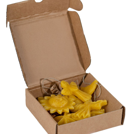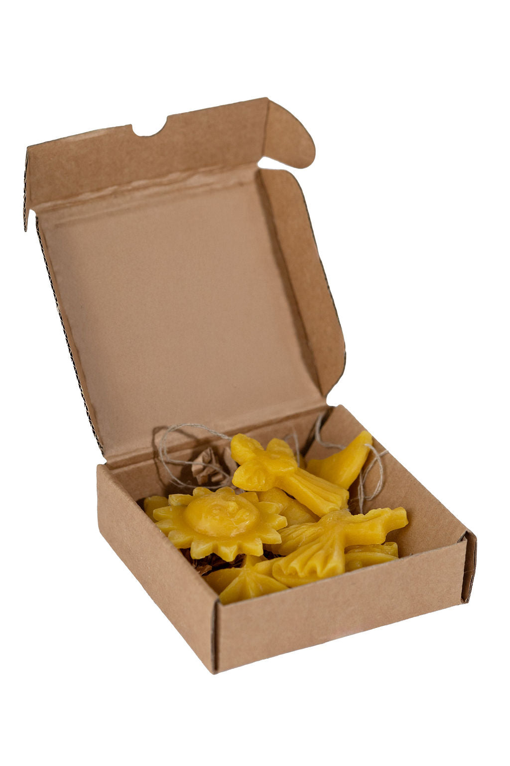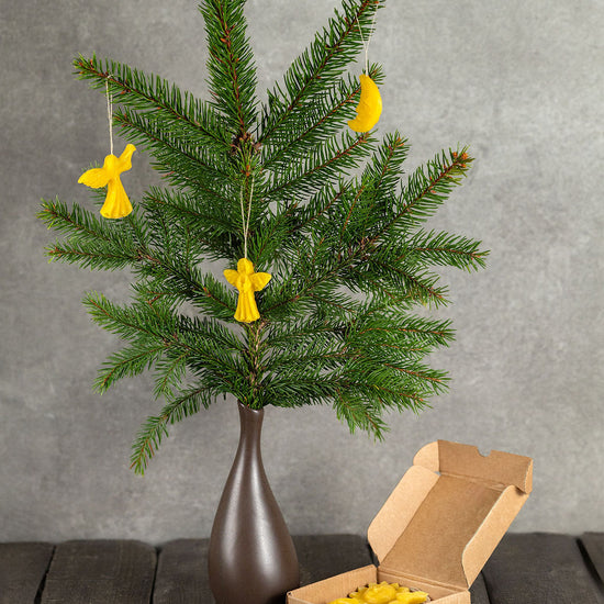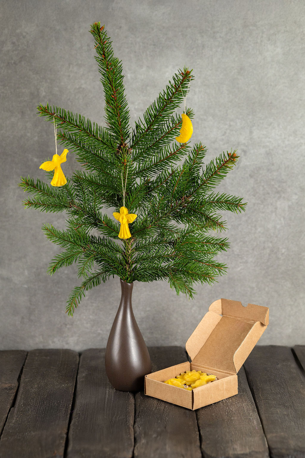 Su meile pagaminti, rankų darbo bičių vaško eglutės žaisliukai (8 vnt.).