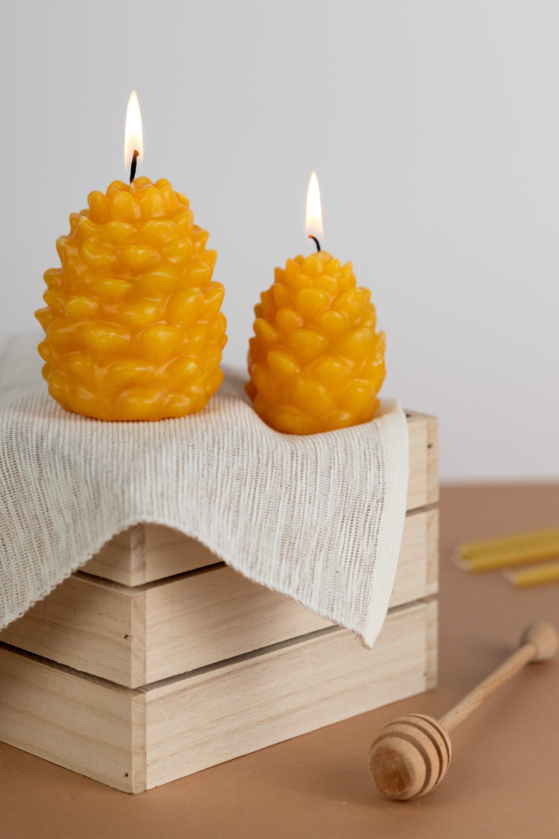 Bičių vaškas – natūraliausia ir seniausia žaliava, naudojama žvakių gamyboje. Švelnus bičių vaško kvapas, jauki liepsna, tradicinio sakralumo ir šiuolaikiškų ekologijos poreikių derinys. Profesionaliai parinkti aukščiausios kokybės medvilniniai dagčiai užtikrina puikią šių žvakių degimo kokybę.