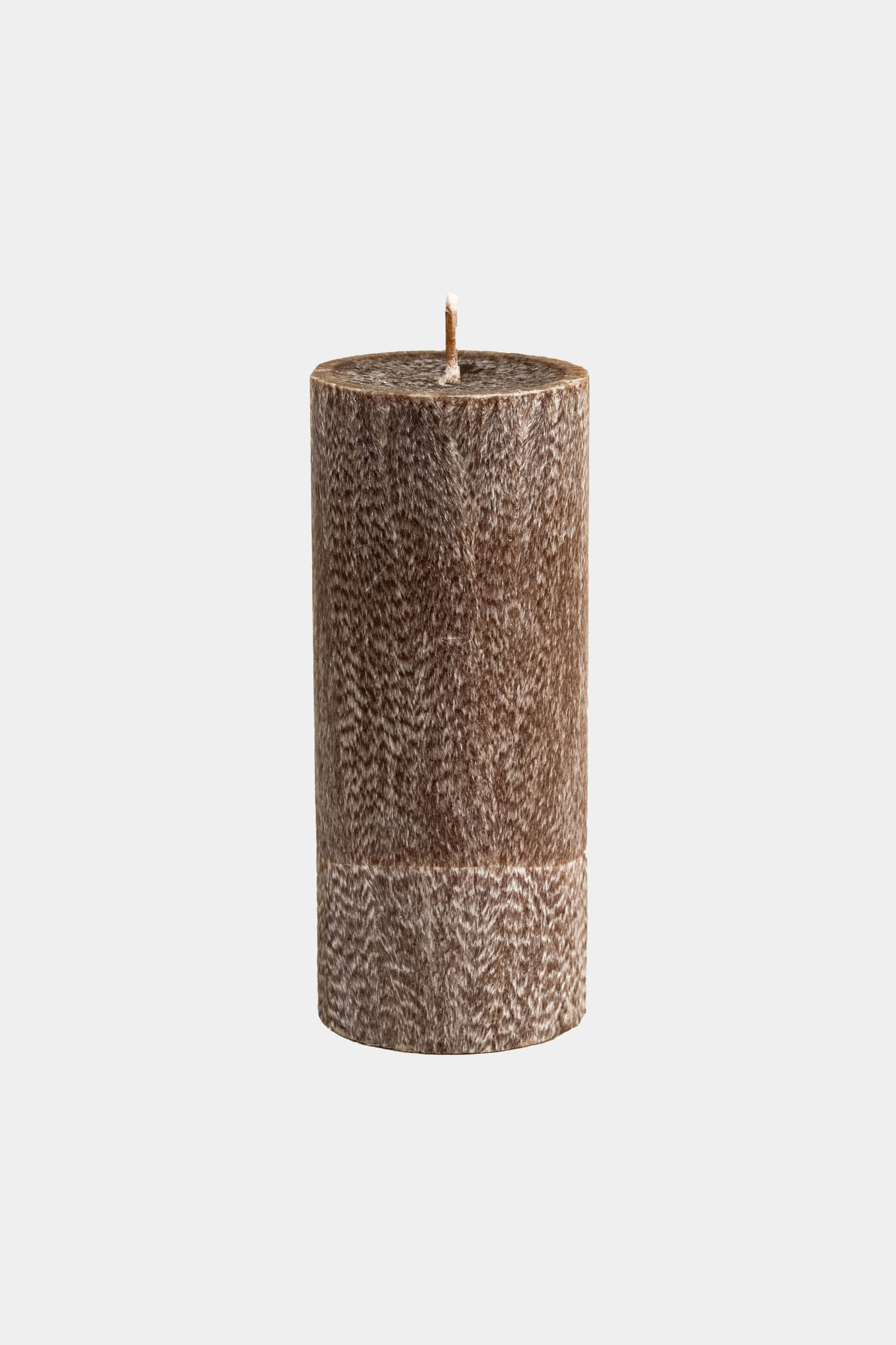 Cilindro formos kvepianti žvakė rudos spalvos, cinamono ir egzotinių vaisių kvapo (maža - 50/120 mm)