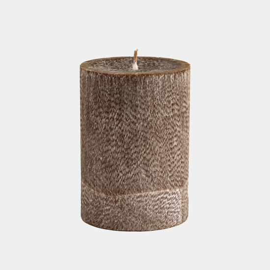 Cilindro formos kvepianti žvakė rudos spalvos, cinamono ir egzotinių vaisių kvapo (vidutinė - 70/100 mm)