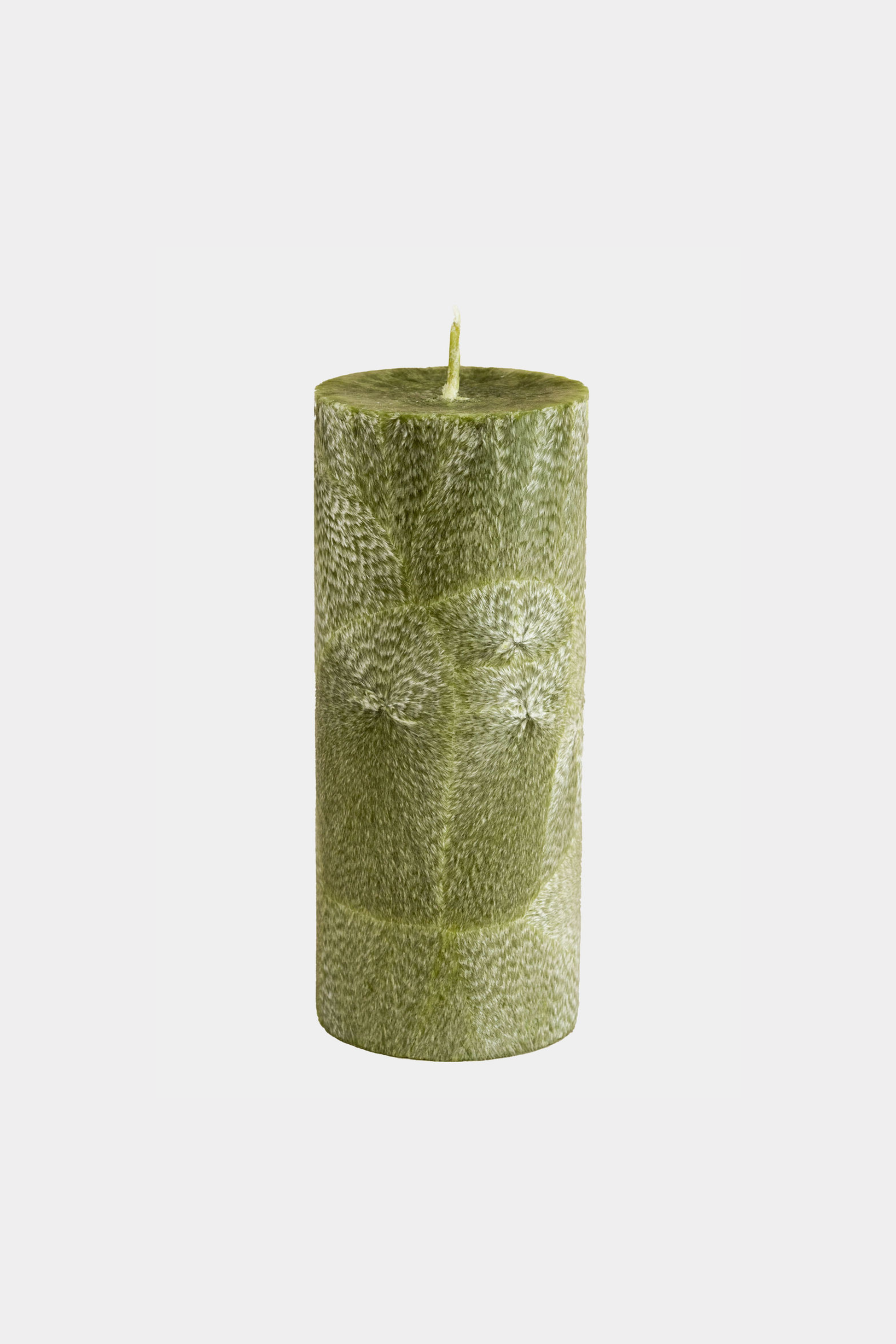 Cilindro formos kvepianti žvakė samanų spalvos, santalo kvapo (maža - 50/120 mm)