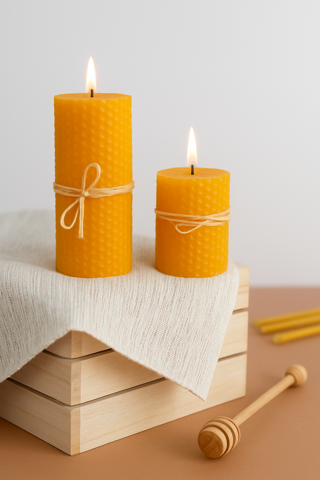 Bičių vaškas – natūraliausia ir seniausia žaliava, naudojama žvakių gamyboje. Švelnus bičių vaško kvapas, jauki liepsna, tradicinio sakralumo ir šiuolaikiškų ekologijos poreikių derinys. Profesionaliai parinkti aukščiausios kokybės medvilniniai dagčiai užtikrina puikią šių žvakių degimo kokybę.