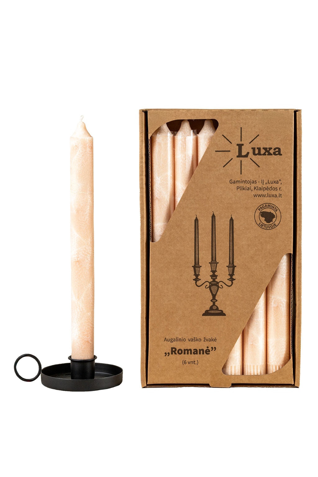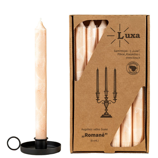 Kvepiančios stalo žvakės „Romanė” kreminės spalvos - karamelės kvapo (6 vnt.)