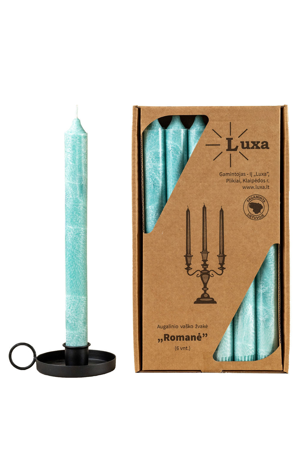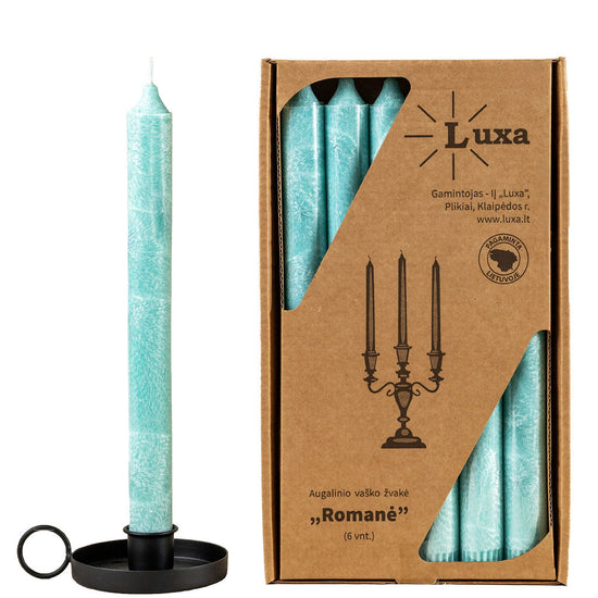 Kvepiančios stalo žvakės „Romanė” turkio spalvos - cinamono kvapo (6 vnt.)