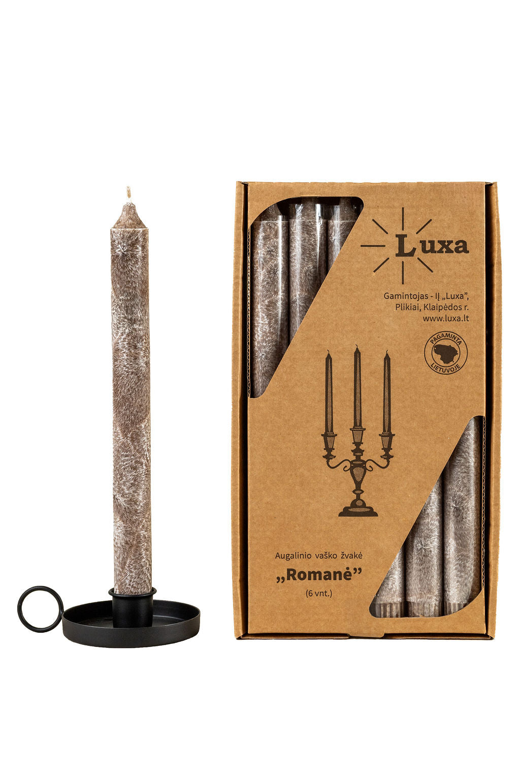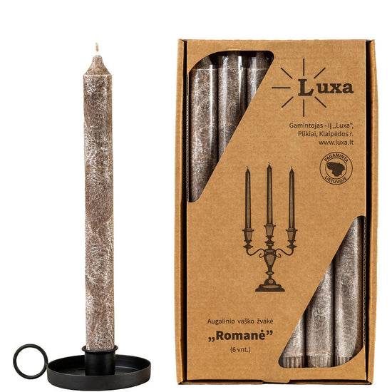 Kvepiančios stalo žvakės „Romanė” rudos spalvos - cinamono ir egzotinių vaisių kvapo (6 vnt.)