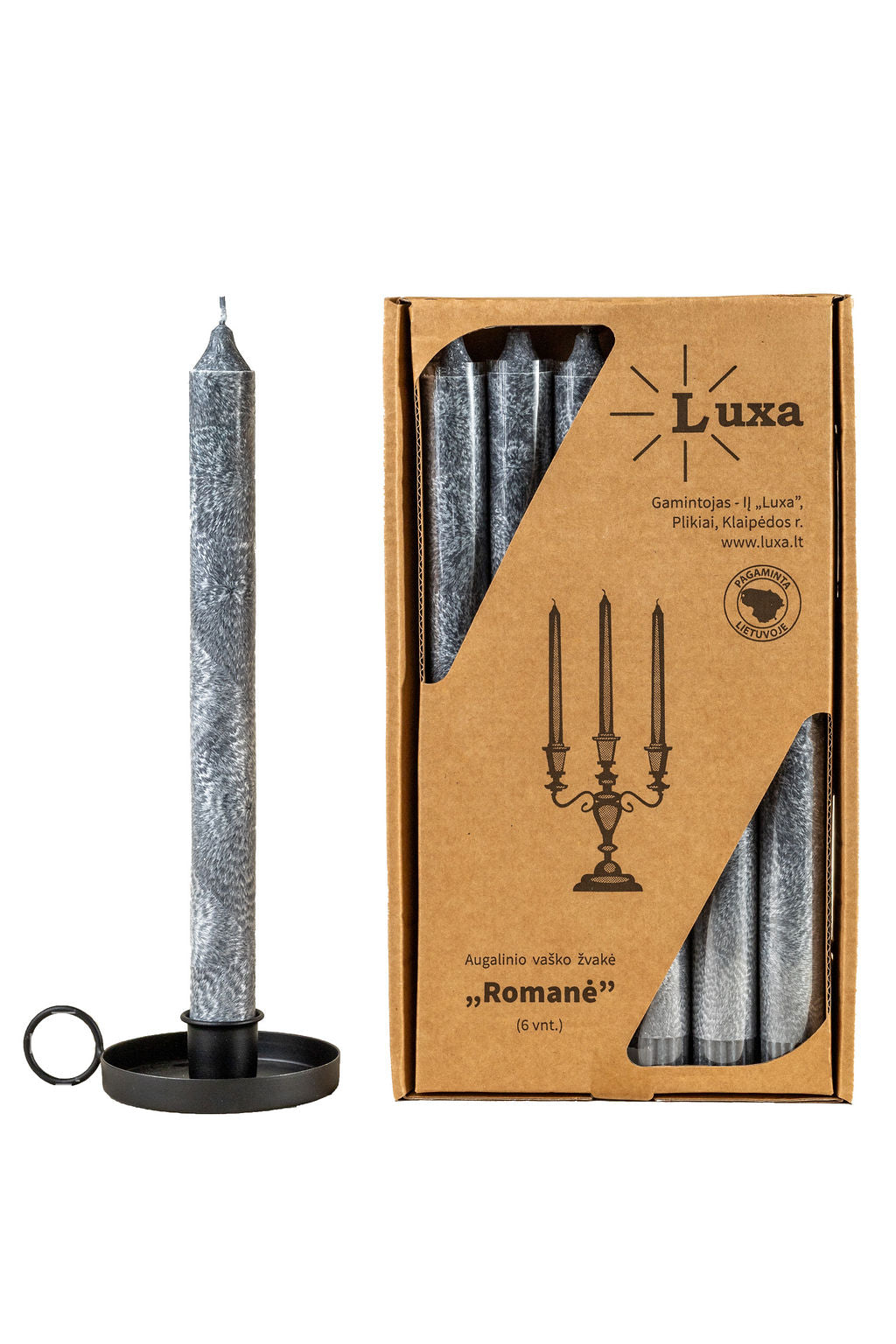 Kvepiančios stalo žvakės „Romanė” grafito spalvos - cinamono kvapo (6 vnt.)