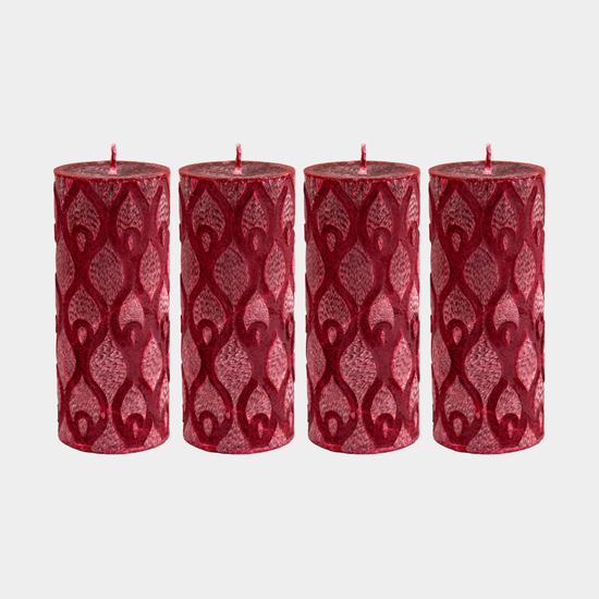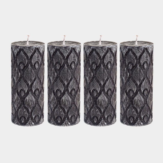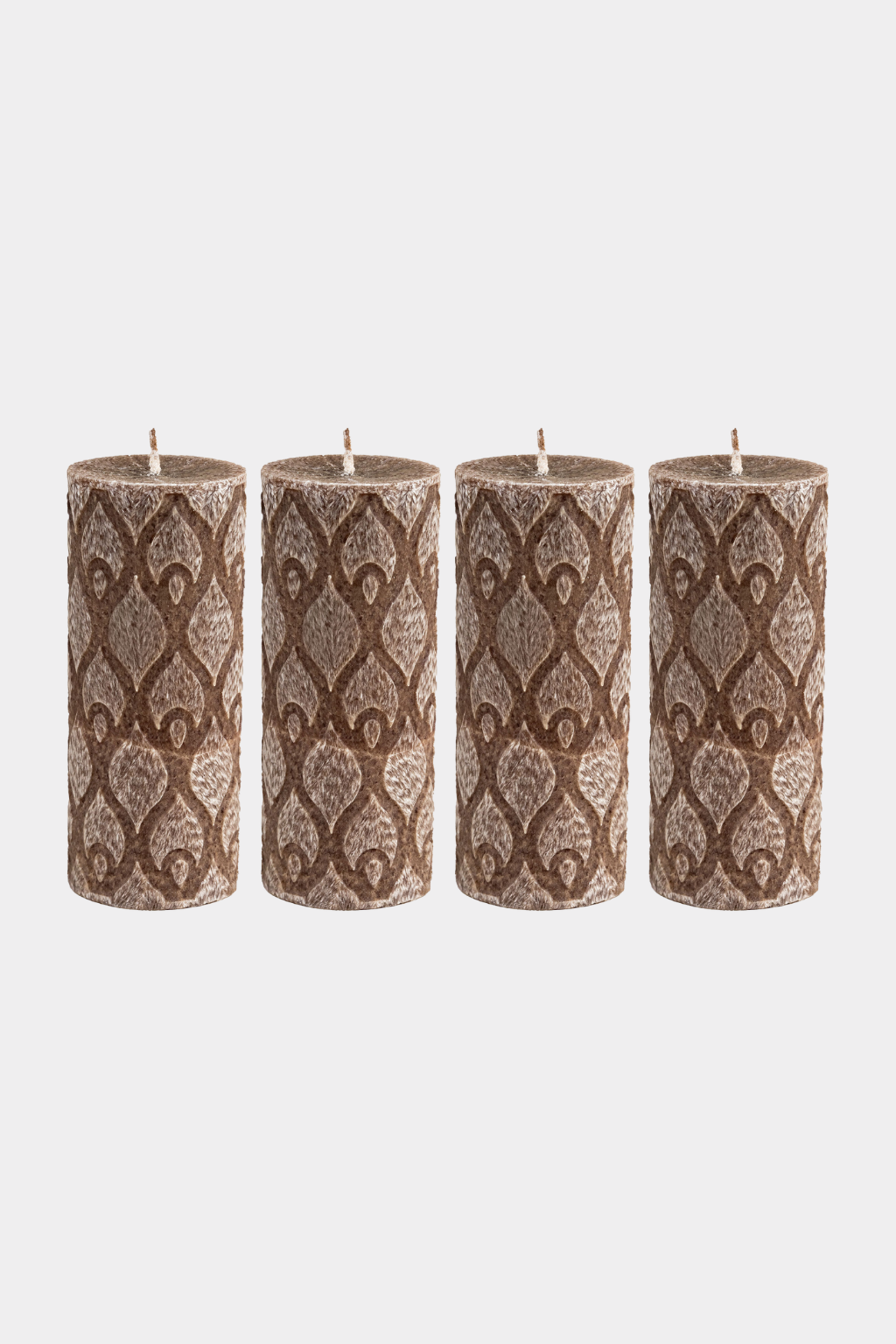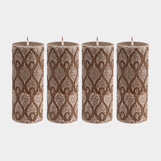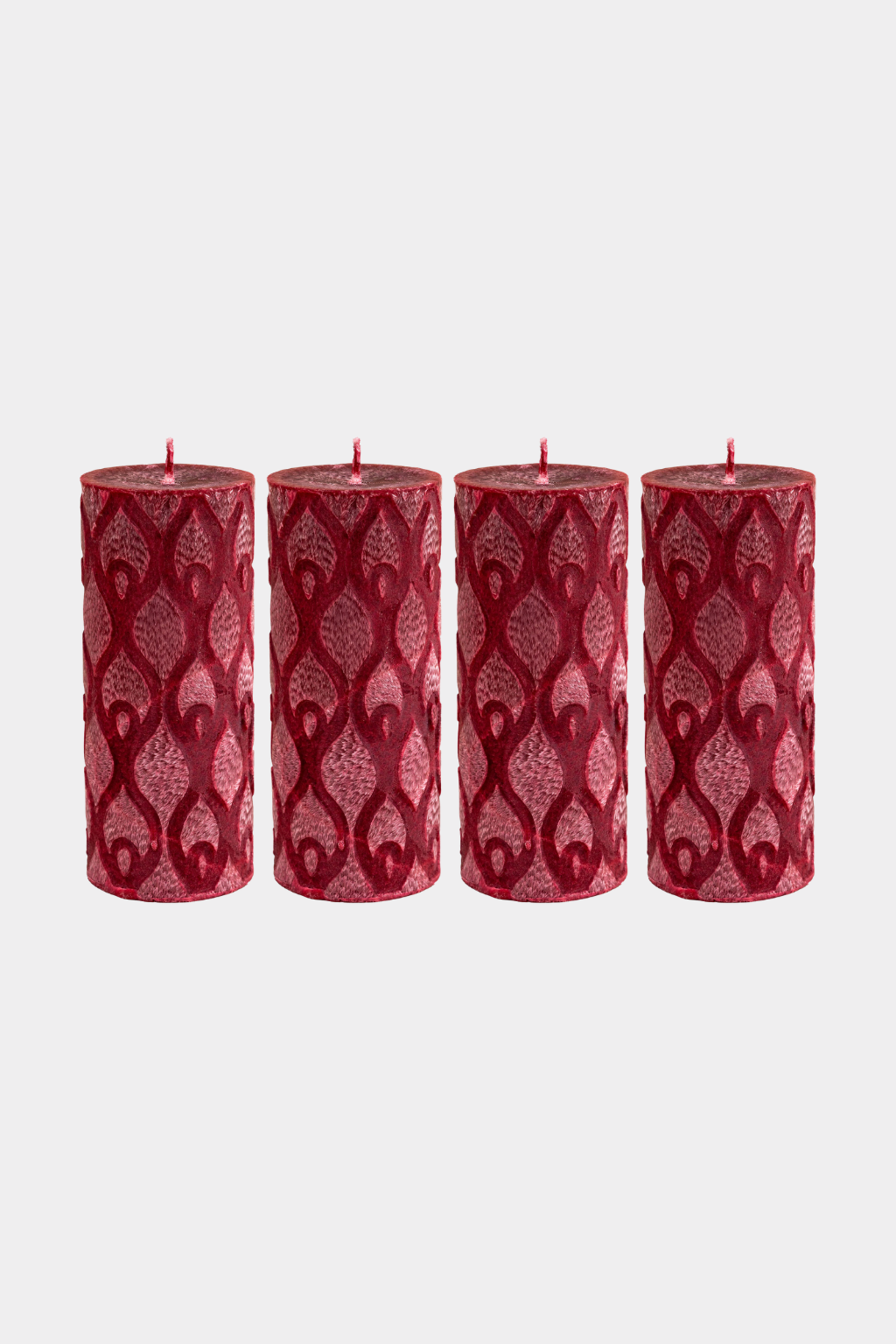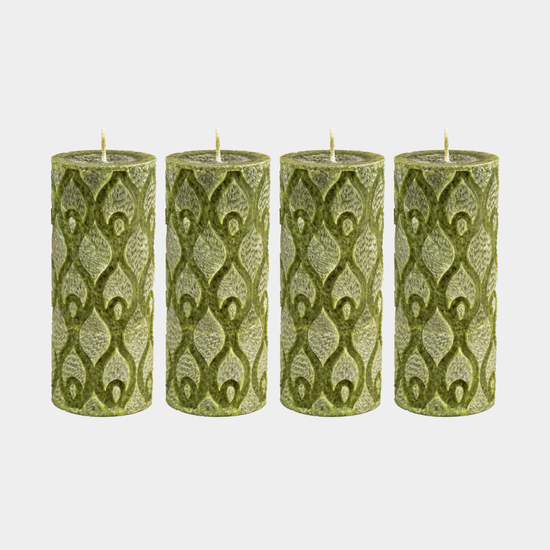 Kvepiančios žvakės namams (rinkinį sudaro 4 vnt. vienos spalvos žvakių). Žvakių ornamentai išraižyti pasitelkus unikalią, mūsų patentuotą technologiją. Šias žvakes pristatome su naujais spalvų ir prabangių kvapų deriniais.