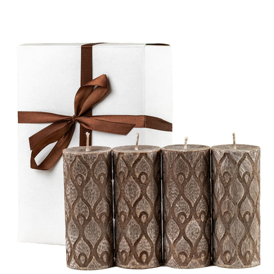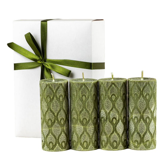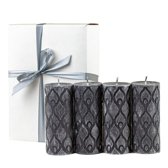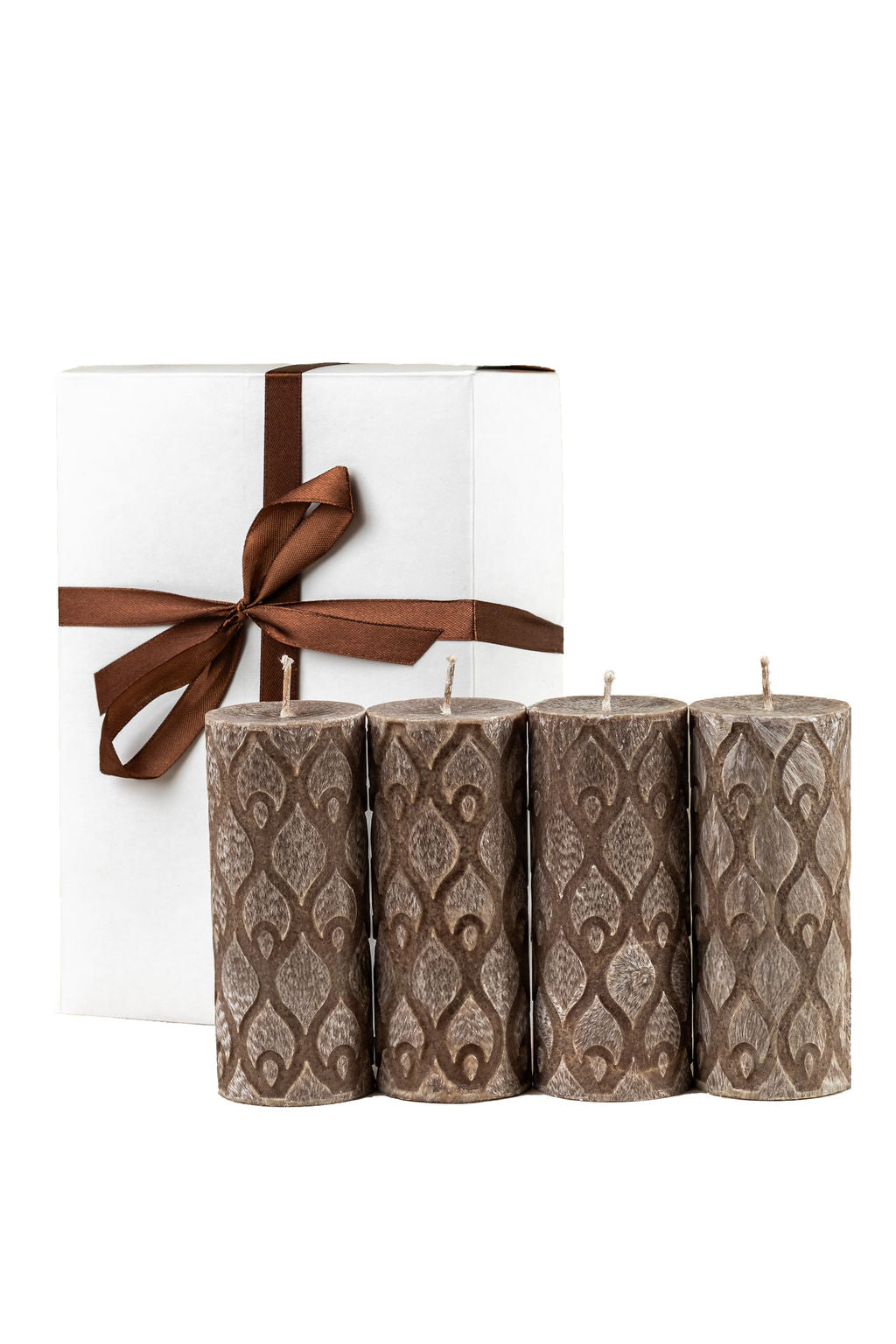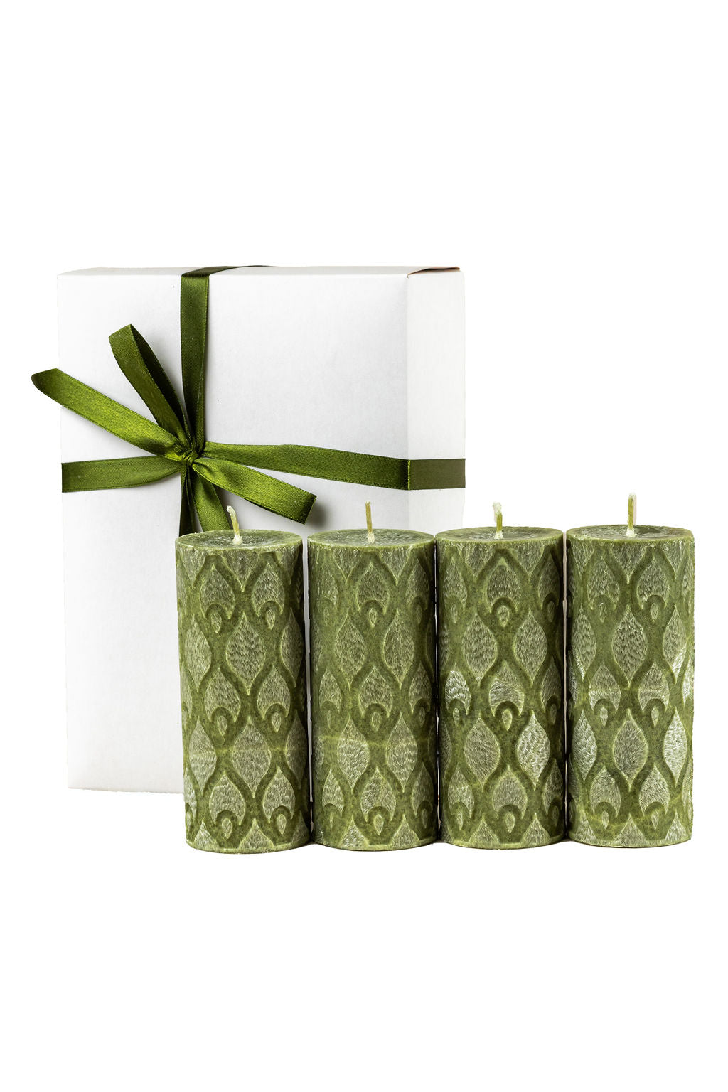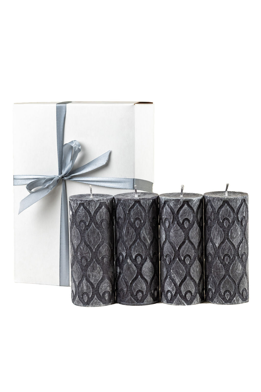 Dovanų rinkinį sudaro 4 kvepiančios žvakes su ornamentu ir atvirute, kuris supakuotas gražioje baltoje dėžutėje su kaspinėliu.
