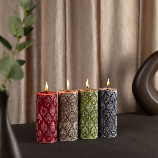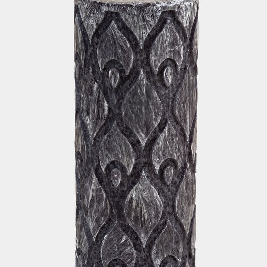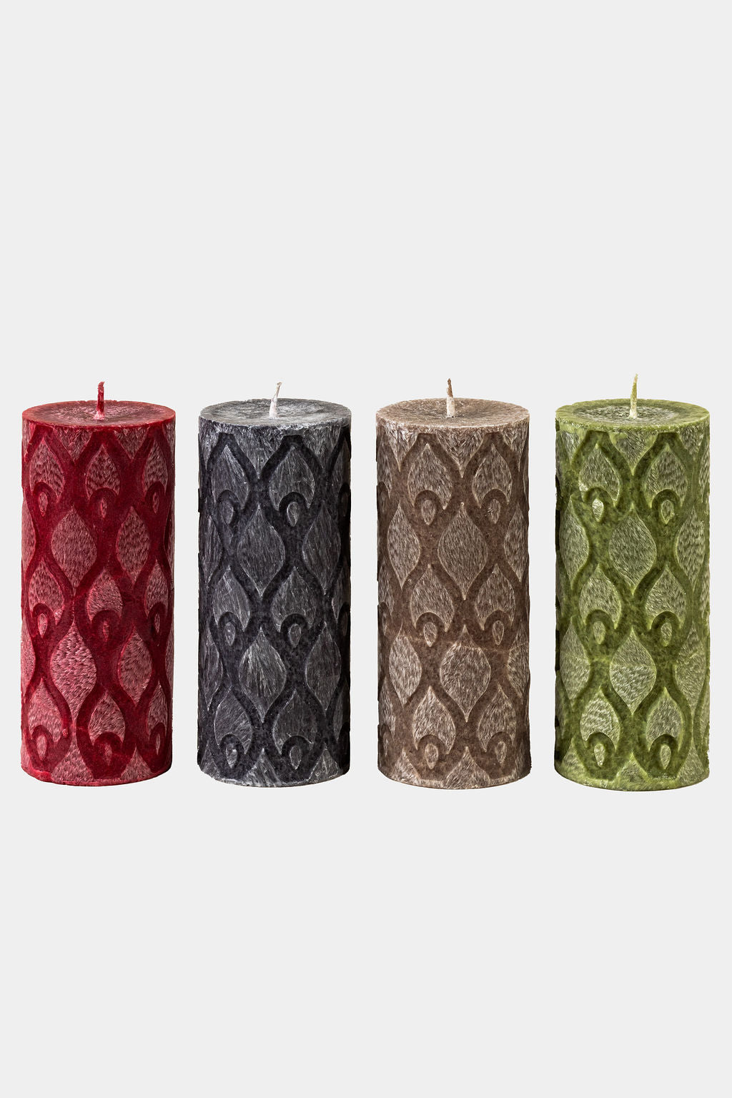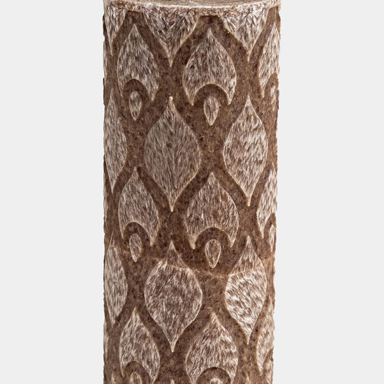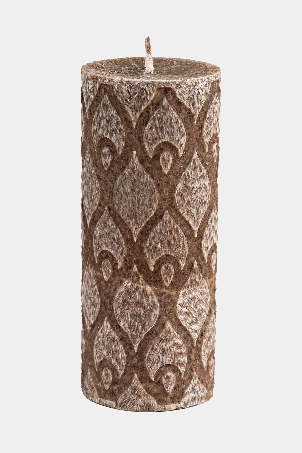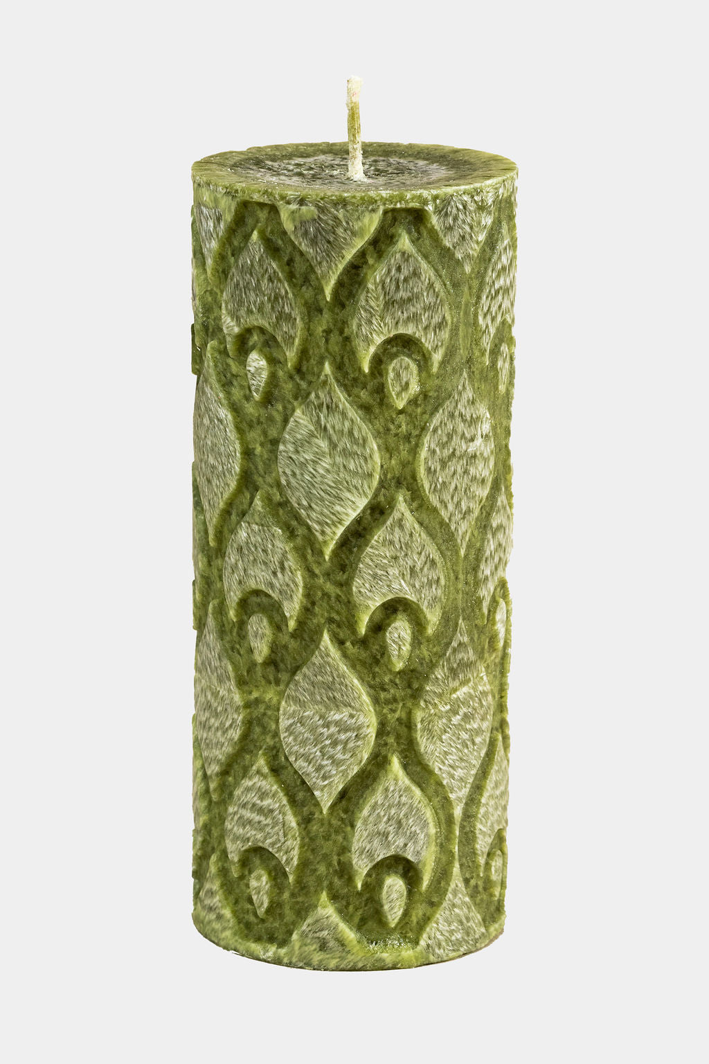 Kvepianti žvakė namams (1 vnt). Žvakės ornamentai išraižyti pasitelkus unikalią, mūsų patentuotą technologiją.