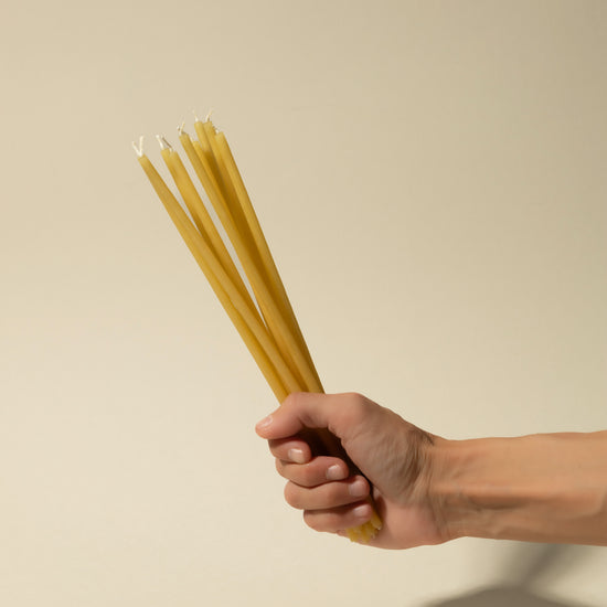 Bičių vaškas – natūraliausia ir seniausia žaliava, naudojama žvakių gamyboje. Švelnus bičių vaško kvapas, jauki liepsna, tradicinio sakralumo ir šiuolaikiškų ekologijos poreikių derinys. Profesionaliai parinkti aukščiausios kokybės medvilniniai dagčiai užtikrina puikią šių žvakių degimo kokybę.