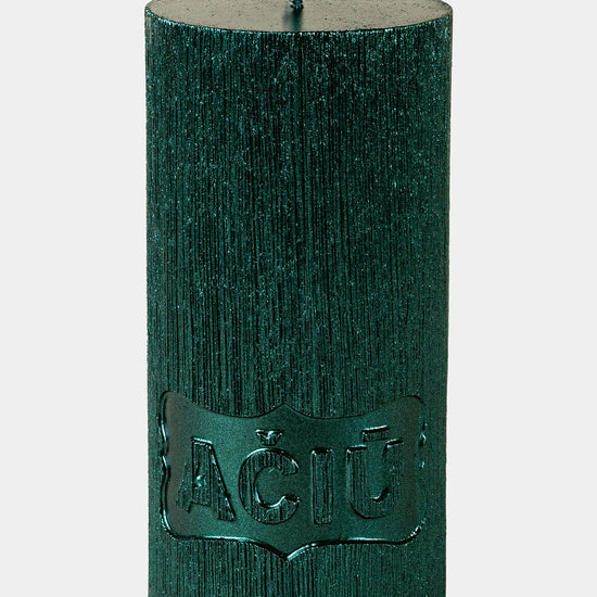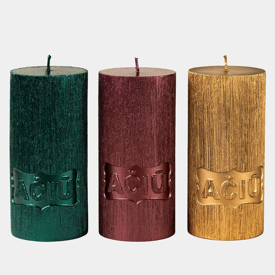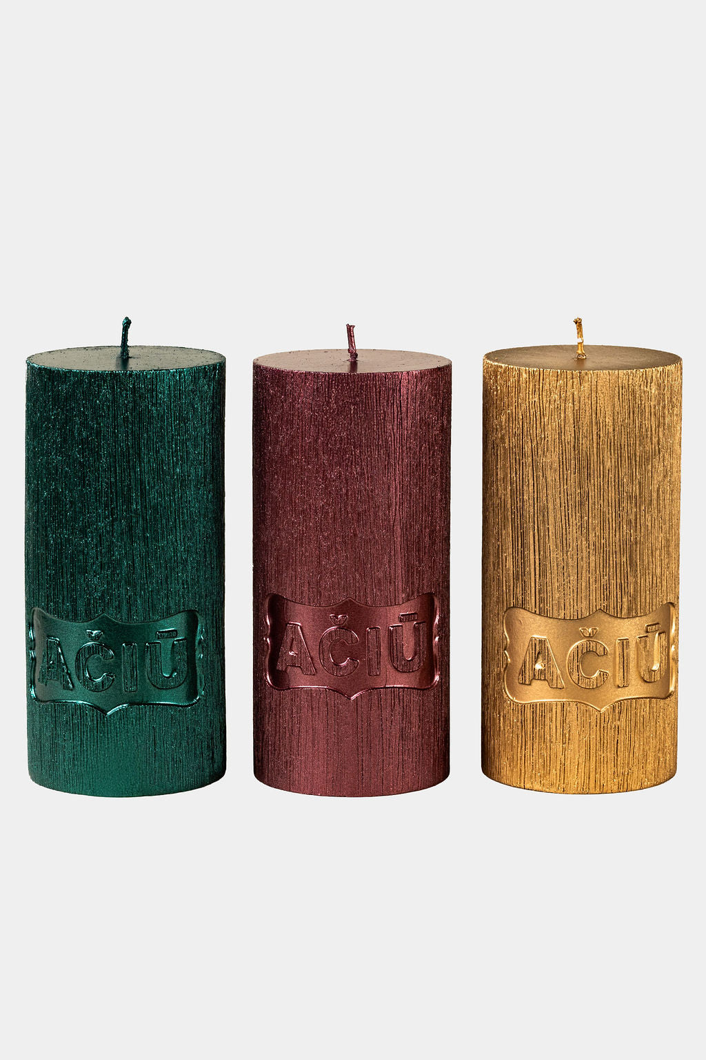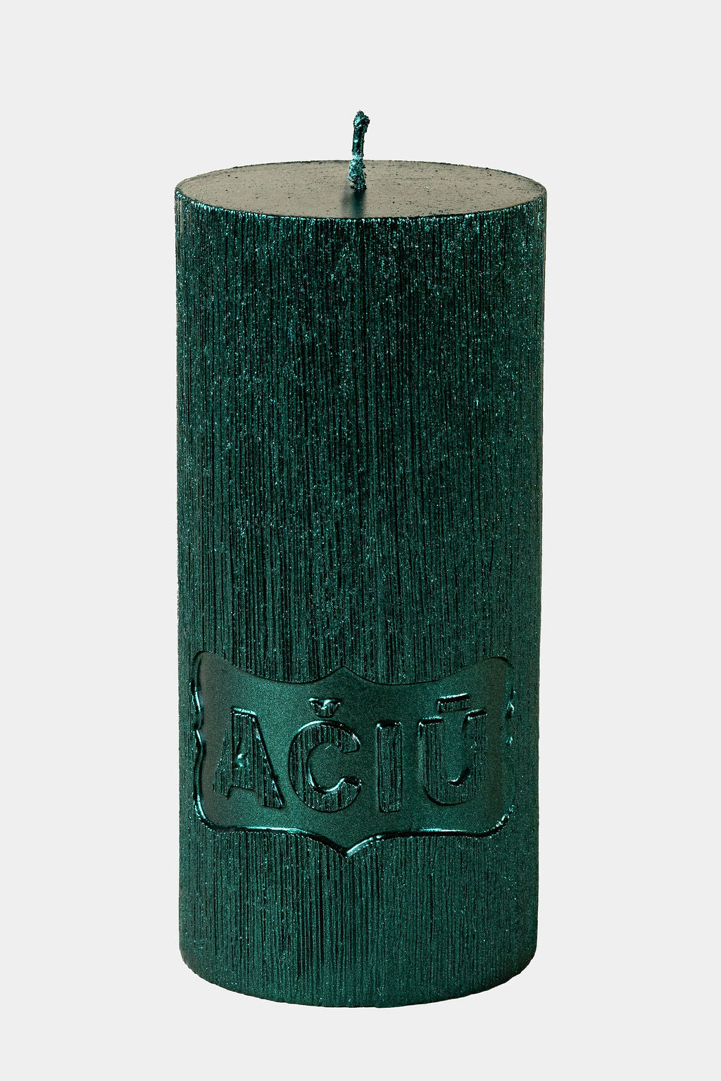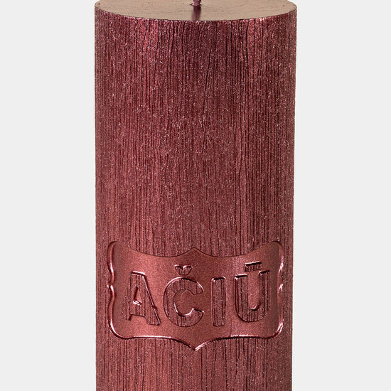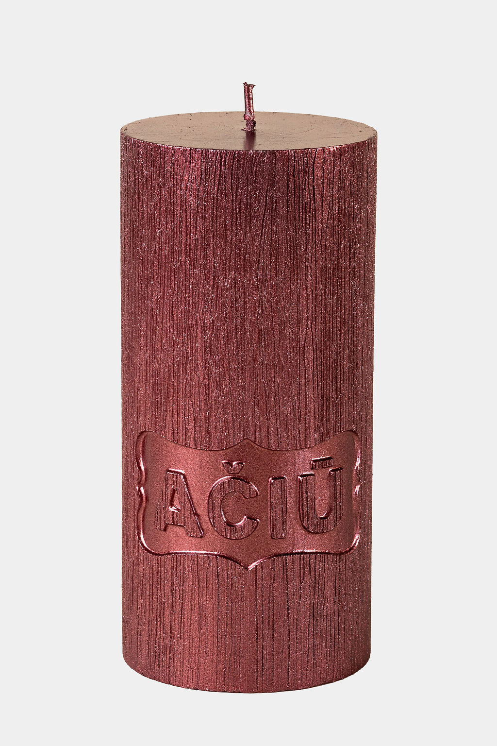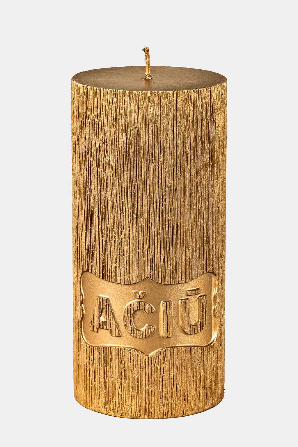 Prabangi cilindro formos žvakė su pasirinktu ornamentu supakuota į dovanų dėžutę su langeliu.
