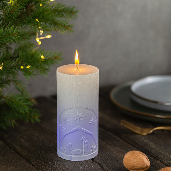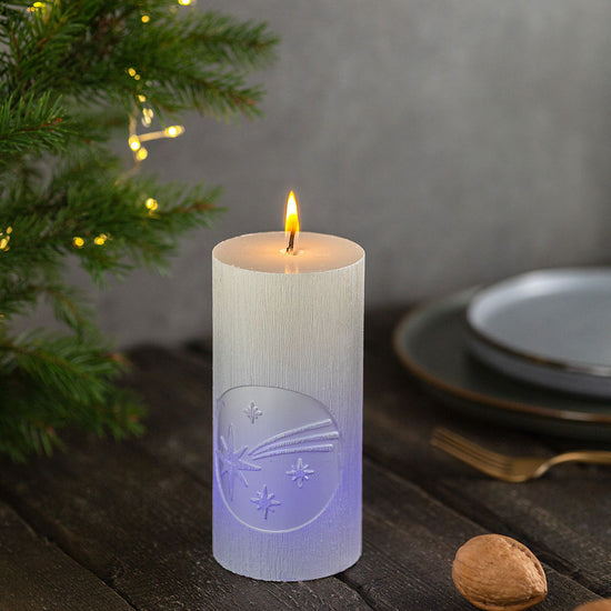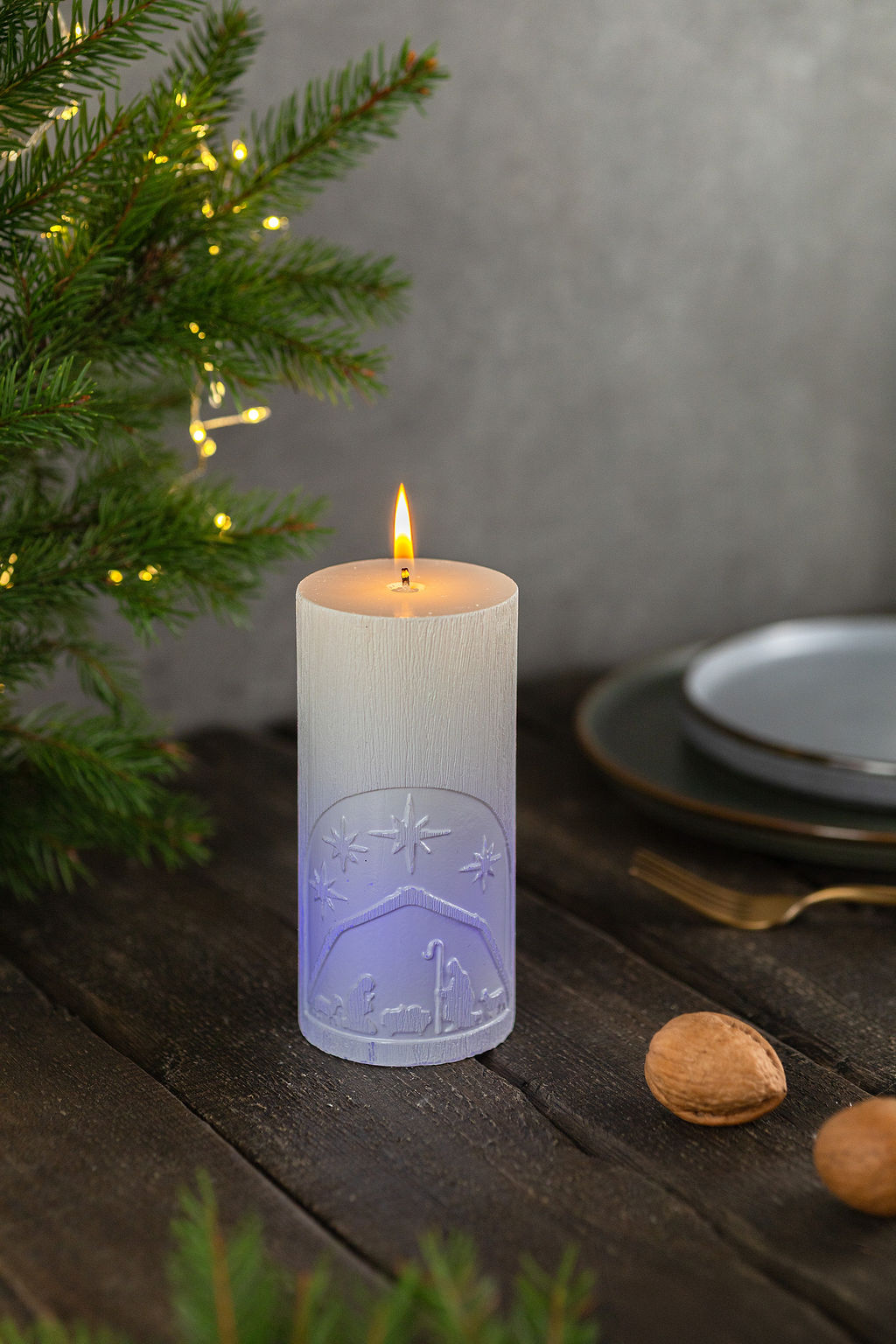 Prabangi spalvas keičianti žvakė – tikra, ne plastikinė žvakė. Uždegta ji dega natūralia, gražia liepsna ir, visų nuostabai – pamažu ima keisti savo spalvą – įgaudama skirtingus – raudoną, žalią, mėlyną, violetinį atspalvius. Užpūtus ji vėl tampa tokia, kokia buvo prieš uždegant. Natūralios žvakės jaukumas čia suderintas su moderniu spalvų žaismingumu.