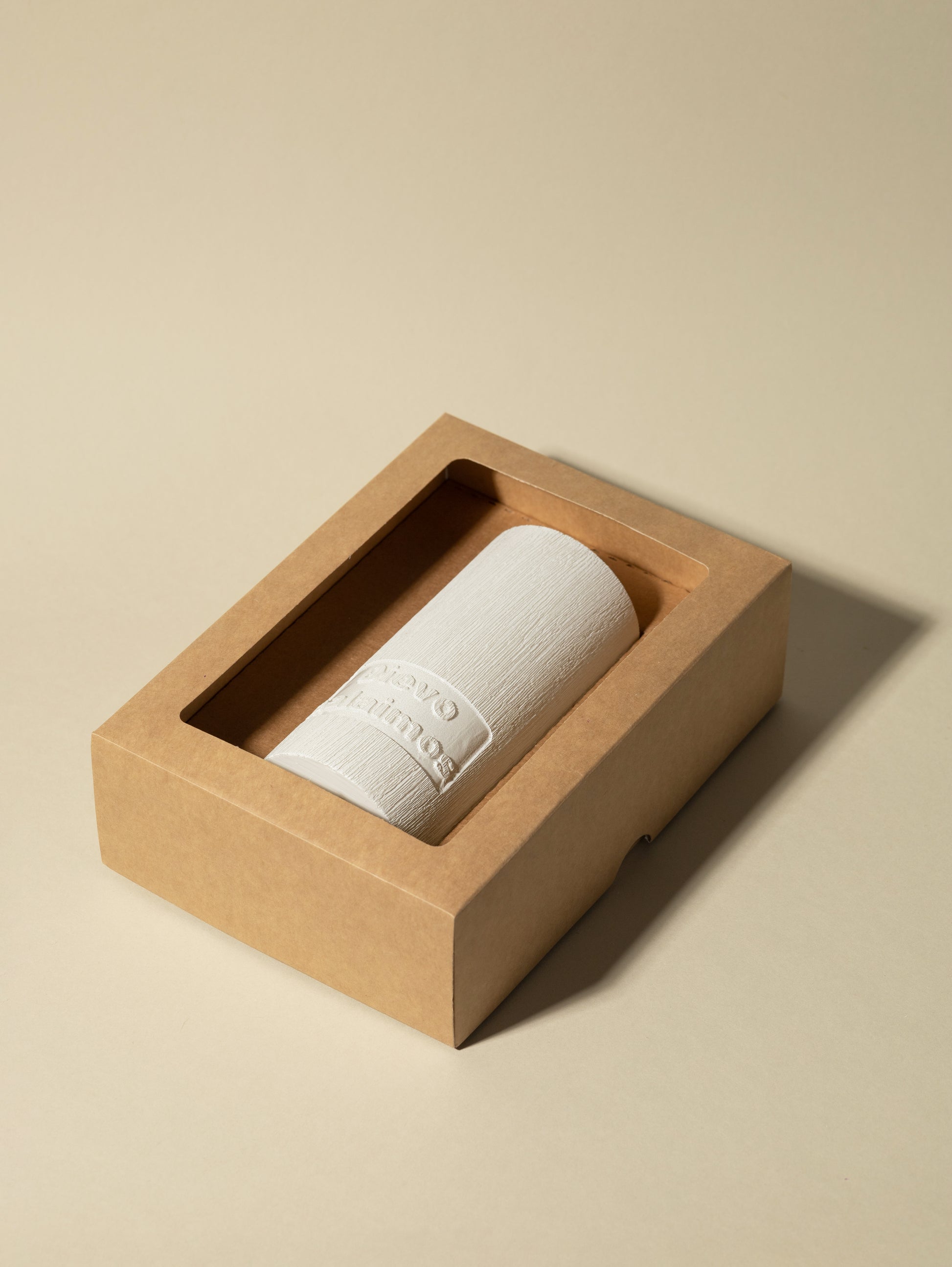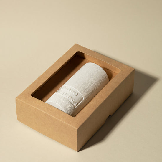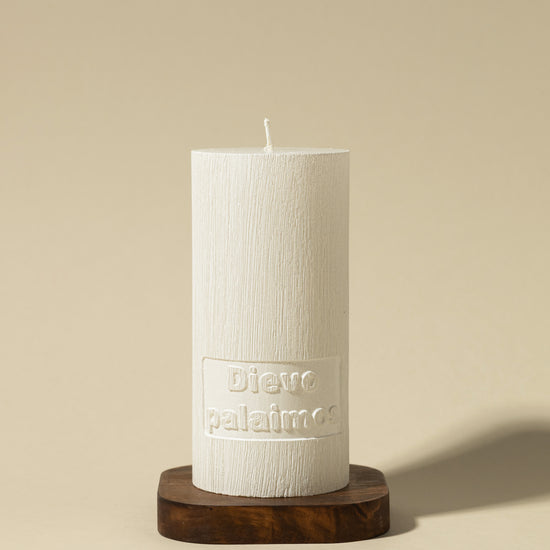 Prabangi vestuvių žvakė su pasirinktu ornamentu supakuota į dovanų dėžutę su langeliu.