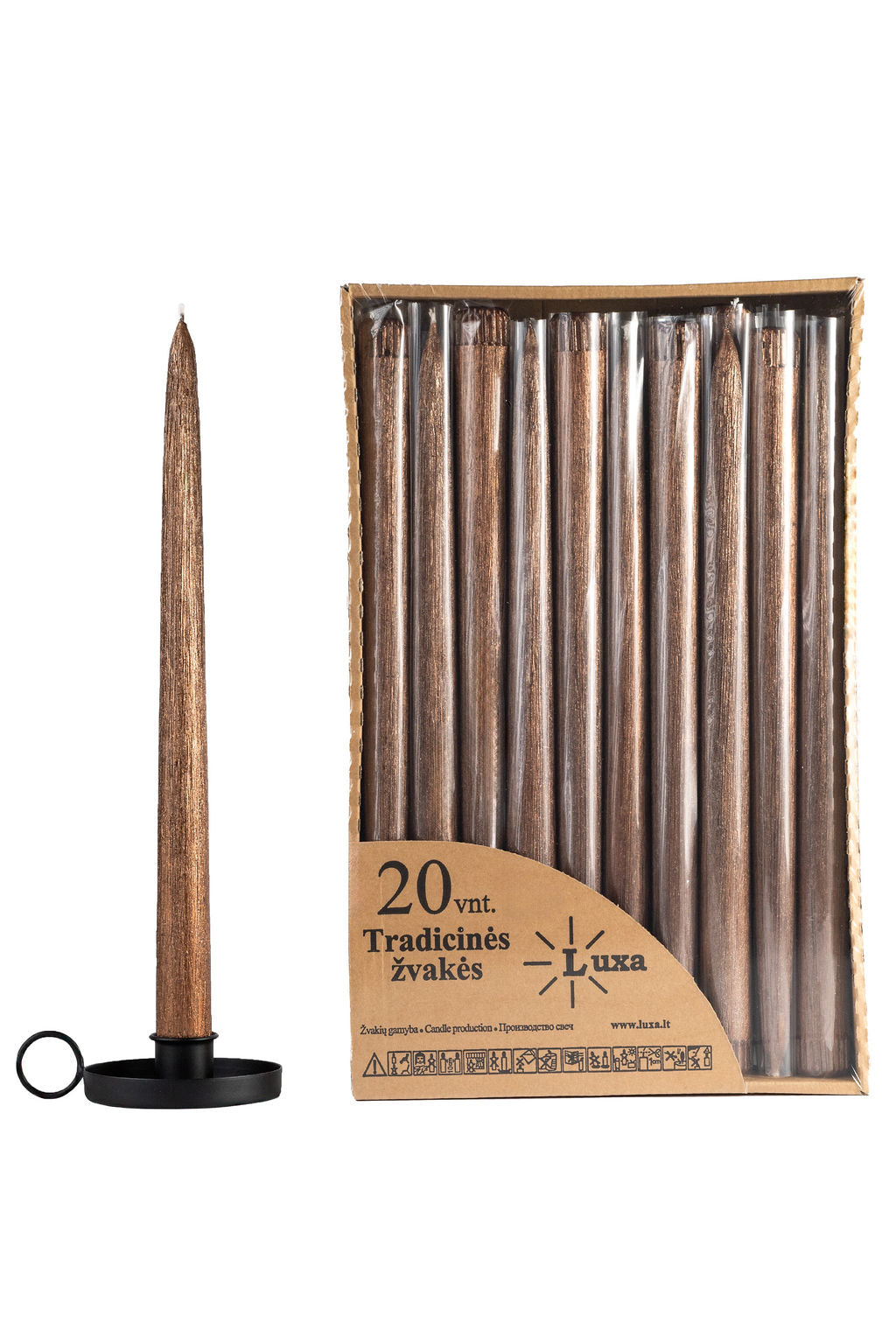 Tradicinės blizgios šokolado spalvos stalo žvakės (20 vnt. / 30 cm)