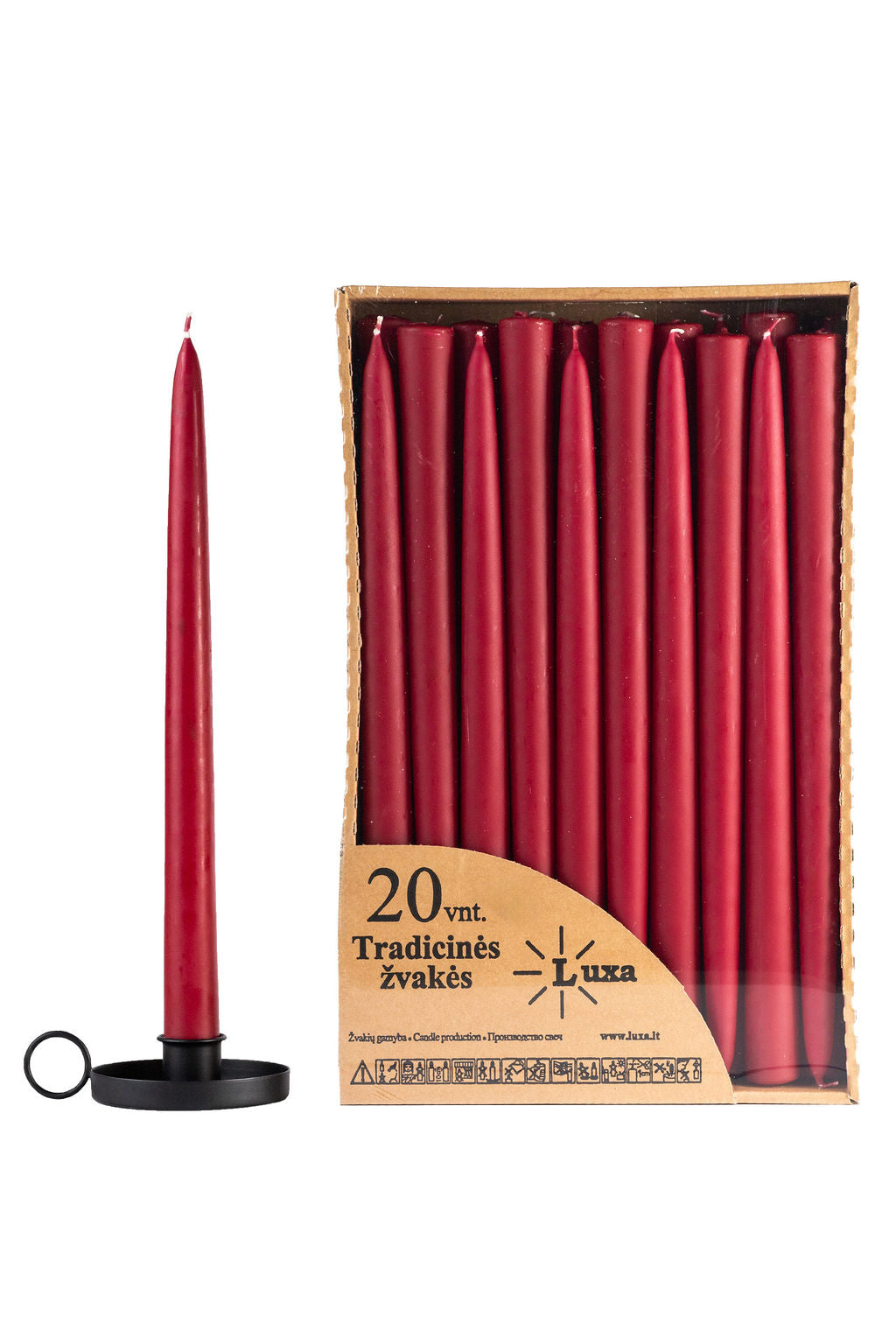 Tradicinės stalo žvakės bordo spalvos (20 vnt. / 30 cm)