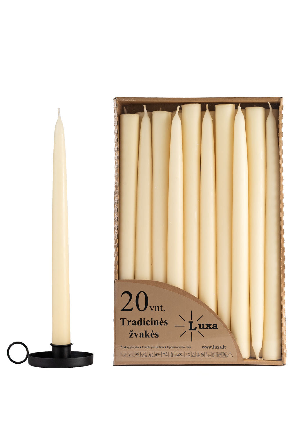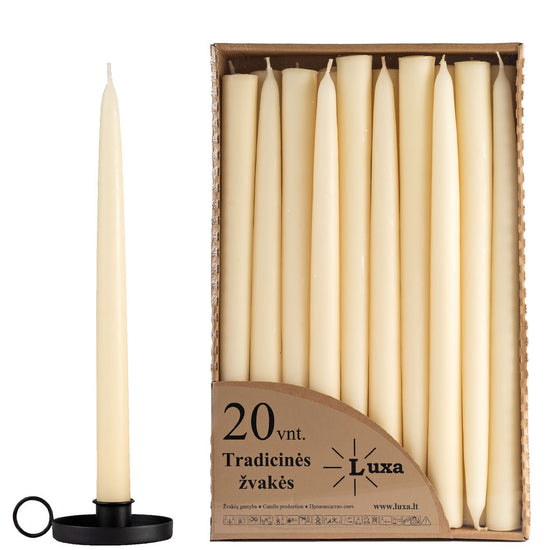 Tradicinės stalo žvakės kreminės spalvos (20 vnt. / 30 cm)