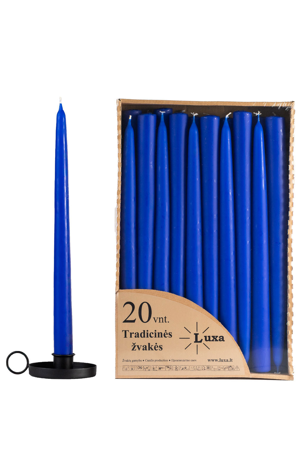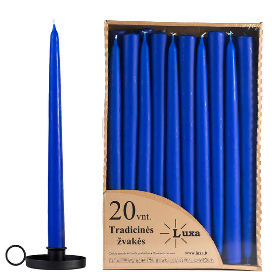 Tradicinės stalo žvakės tamsiai mėlynos spalvos (20 vnt. / 30 cm)