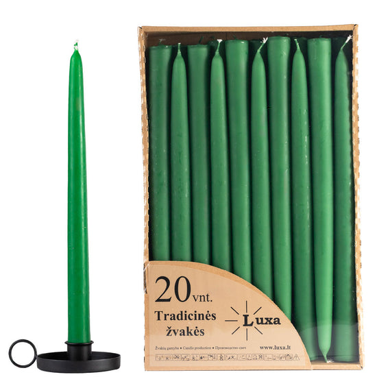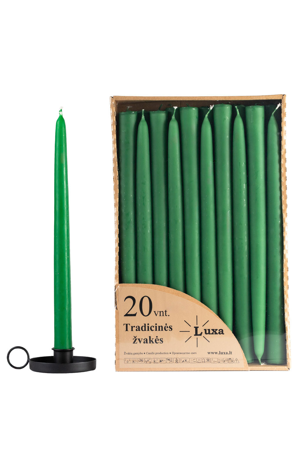 Tradicinės stalo žvakės žalios spalvos (20 vnt. / 30 cm)